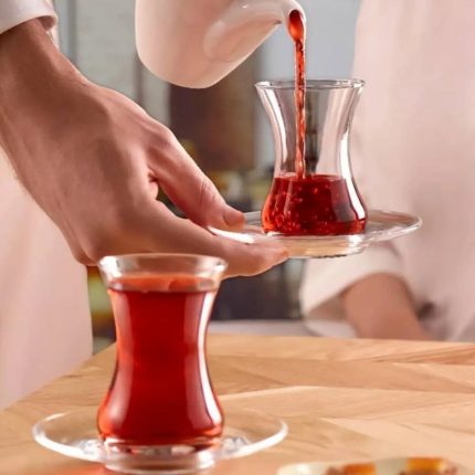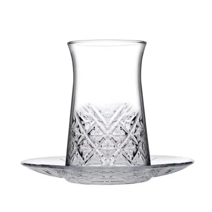 – **ویژگیها:** طراحی کمرباریک زیبا، مناسب برای سرو چای، مقاوم در برابر ضربه، قابل شستشو در ماشین ظرفشویی