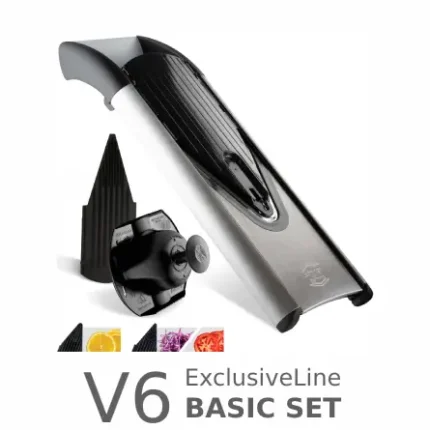 برش میوه و سبزیجات V3 دارای پایه های لاستیکی یکپارچه برای حمل و نقل ایمن است که پایه محکمی را هنگام برش تضمین می کند. علاوه بر این، دسته ارگونومیک شکل استفاده از دستگاه برش سبزیجات را آسان می کند.