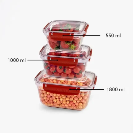 ست ظرف نگهدارنده مستطیلی وکیوم دنیاپلاستیک ترکیه-سه تکه-کد MASTER 30866